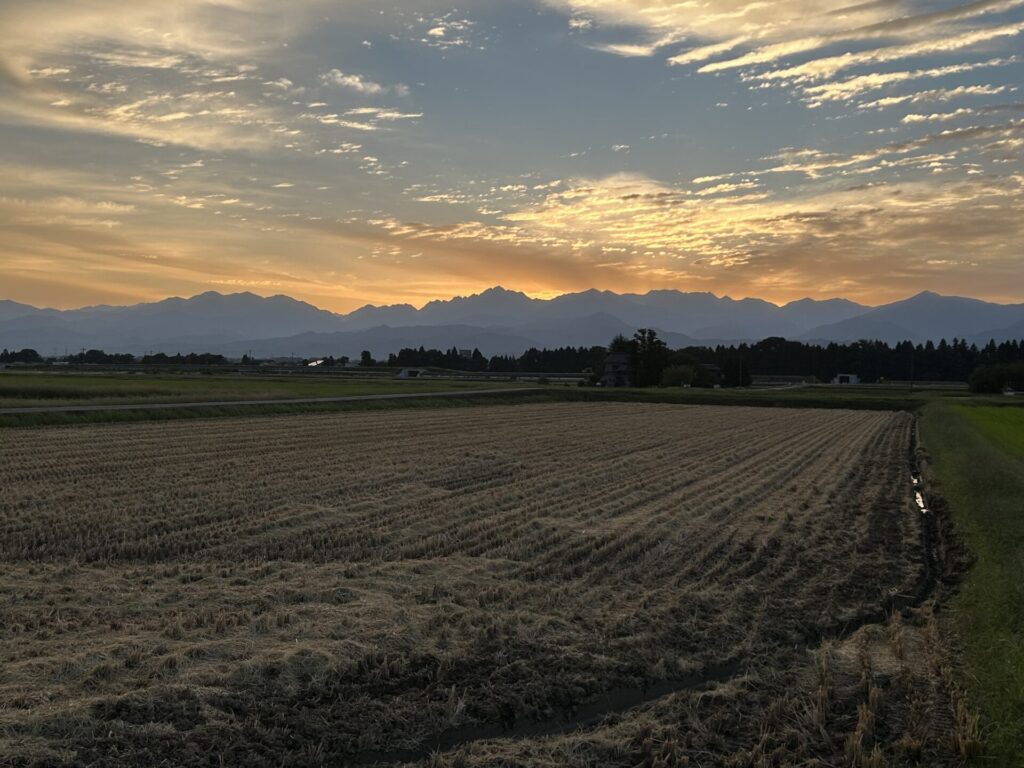 早起きして外に出ますと、立山連峰から朝日が昇ってくるのを見ることができます。